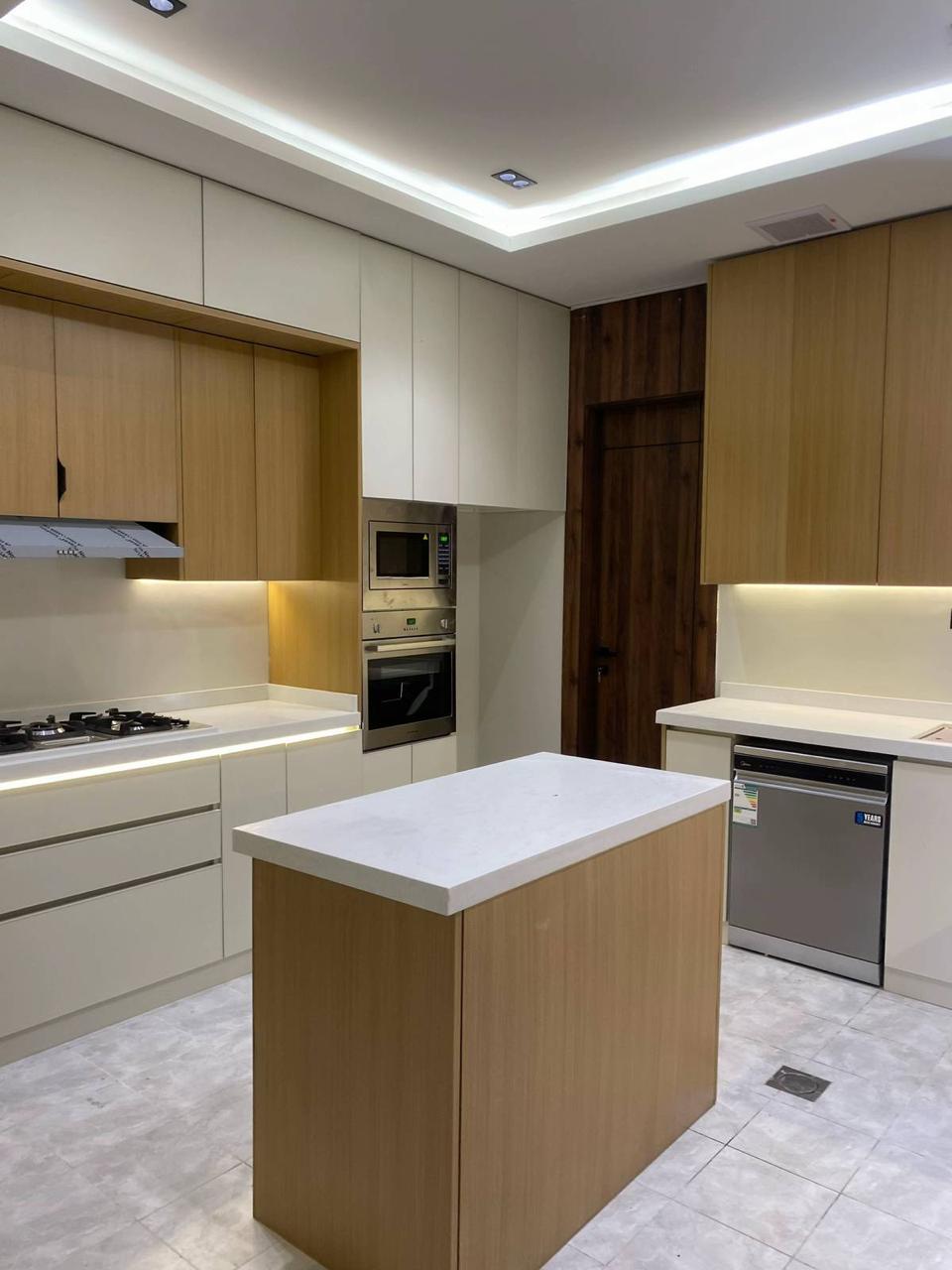 تصميم عصري بلمسة فاخرة، يتميز بجزيرة وسطية متعددة الاستخدامات تُضفي أناقة وعملية على المطبخ، مثالي للمطابخ الواسعة، ويوفر مساحة إضافية للتحضير، التخزين، أو حتى جلسات عائلية مريحة.